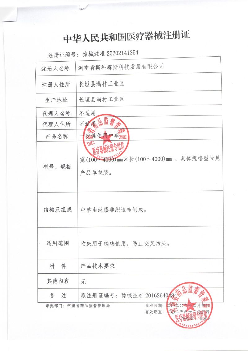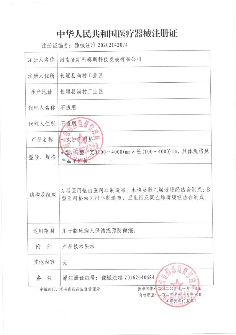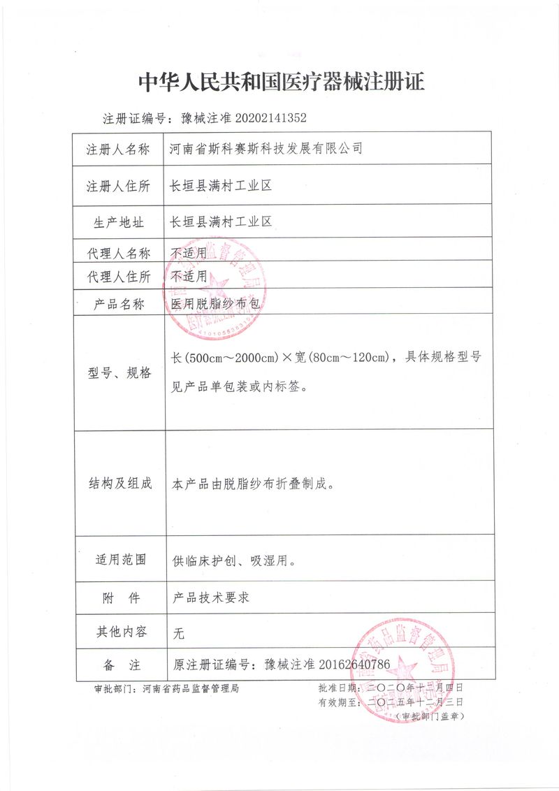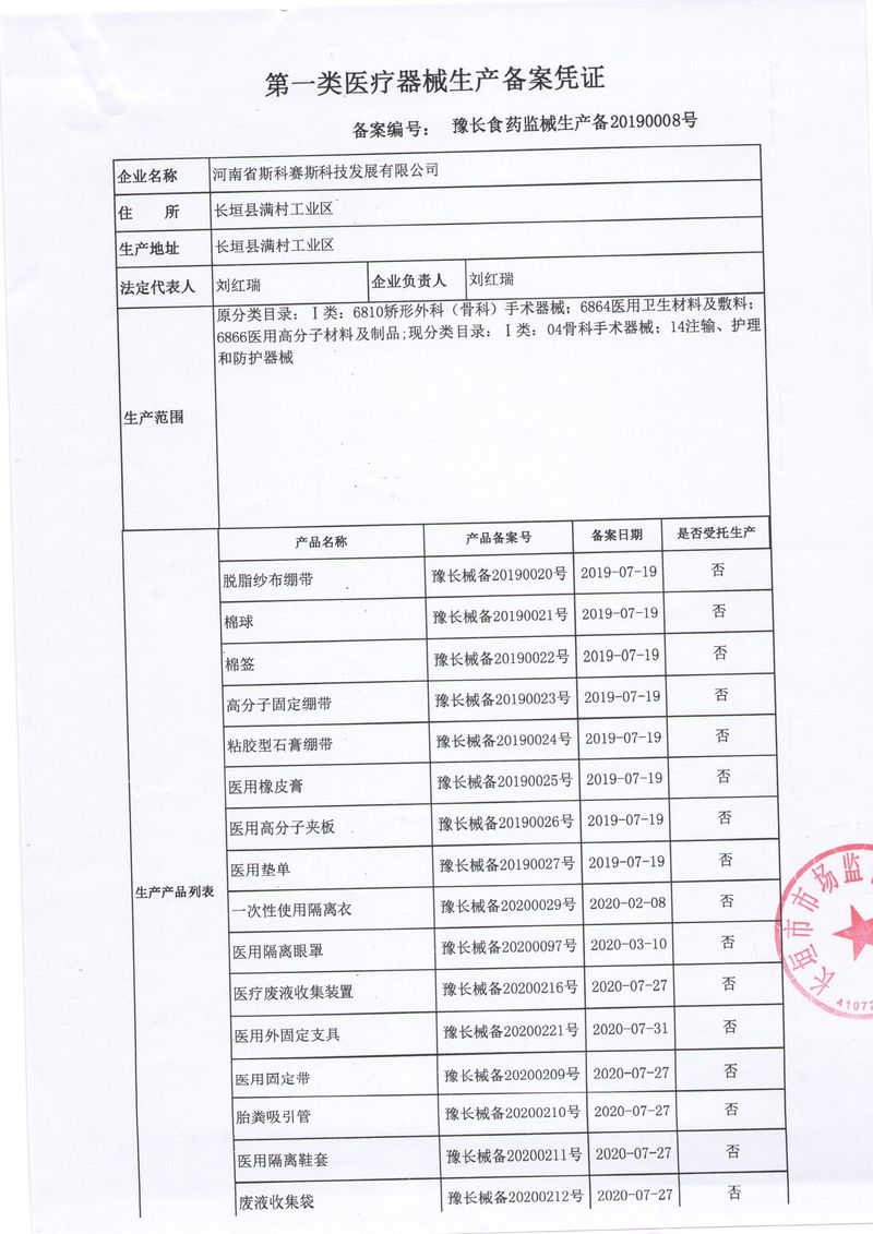 河南省斯科賽斯科技發(fā)展有限公司創(chuàng)建于 2011 年,位于“中國醫(yī)療耗材之都”- 河南省長垣縣,西臨 308 省道,南靠新菏鐵路,北依長濟高速,交通便捷,經濟發(fā)達,環(huán)境優(yōu)美。斯科賽斯積極進入醫(yī)療健康和服務領域,秉承為用戶創(chuàng)造價值的理念,專注于醫(yī)用耗材解決方案的研發(fā)和運營,并為用戶提供完善的產品解決方案;  斯科賽斯主要生產醫(yī)用麻醉系列、醫(yī)用高分子系列、醫(yī)用敷料包系列、醫(yī)用無紡布系列、醫(yī)用防護系列、醫(yī)用脫脂棉系列、生物材料制品類等七大類、100 多個品種、400 多個規(guī)格的產品。公司占地面積約 30000 平方米,建筑面積20000 平方米,擁有 10 萬級的凈化車間總面積 10000 平方米。擁有國際先進水平的生產設備和檢測儀器,技術裝備精良,檢測手段完善,為醫(yī)療行業(yè)的不斷發(fā)展進步提供保障。公司順利通過 ISO9001、ISO13485 質量管理體系認證。  斯科賽斯堅持研發(fā)高科技新產品,力爭在醫(yī)療器械關鍵領域取得技術和研發(fā)的重大突破;立足國內和國際兩個市場,逐步實現管理理念、經營機制、人力資源、技術、產品、市場等全方位對接,提高企業(yè)的核心競爭力;過去的歲月里,斯科賽斯砥礪前行,誠信務實,銳意進取,不斷創(chuàng)新,用自己的睿智和辛勞,以富有責任感的使命,在探索中追求,在追求中超越,致力于成為值得信賴的醫(yī)療用品生產企業(yè)!在未來的日子里,斯科賽斯將一如既往豪情滿懷,信心百倍,攜手并肩,執(zhí)著追求,向更高的的目標前進,鑄造新的輝煌!